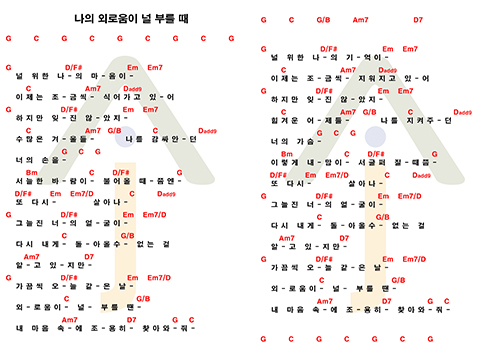 [악보] 나의 외로움이 널 부를 때 - 장필순